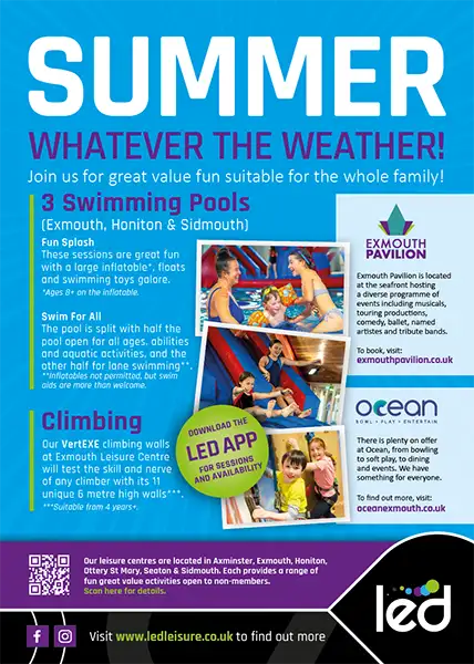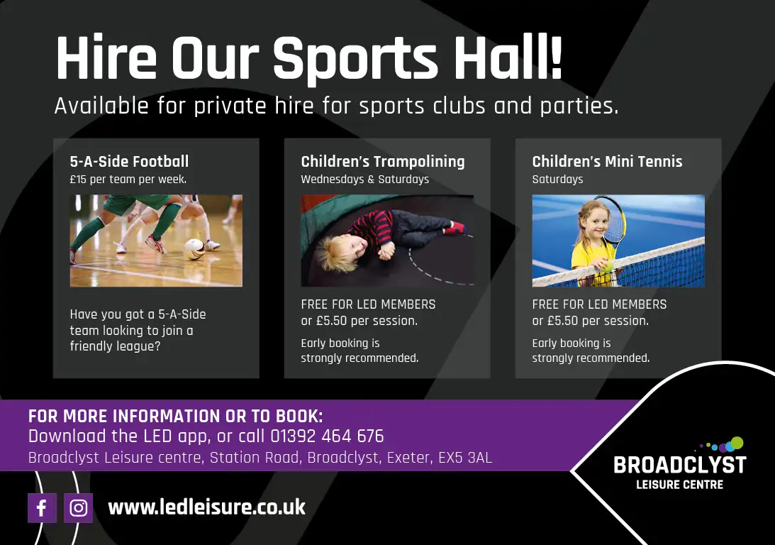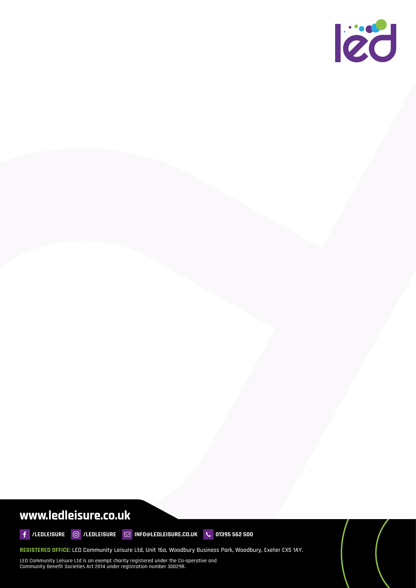 If your design is marketing a single centre, for example Broadclyst Leisure Centre, then the LED – Community Leisure logo would be replaced with the sub brand logo for this centre.